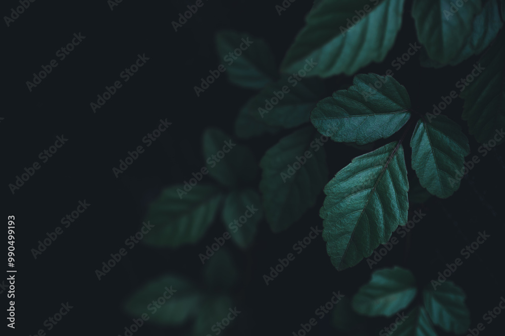 Dark green leaf texture, Natural green leaves using as nature background black wallpaper or tropical leaf cover page