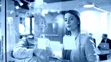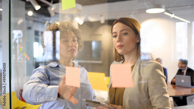 Two businesswomen brainstorming while making a business plan at their company
