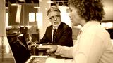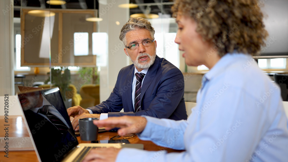 Mature businessman and his female colleague working together at the company office