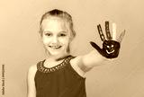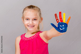 Colorful painted hands in a beautiful young girl.