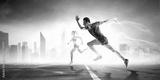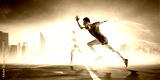 Man in sportwear running. Mixed media