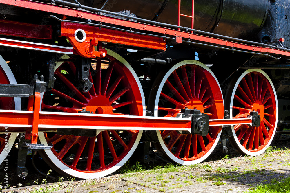 detail of steam locomotive in railway museum, Koscierzyna, Pomer