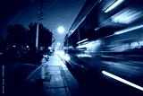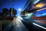 Speeding bus, blurred motion. Las Vegas Blvd., Las Vegas, USA.