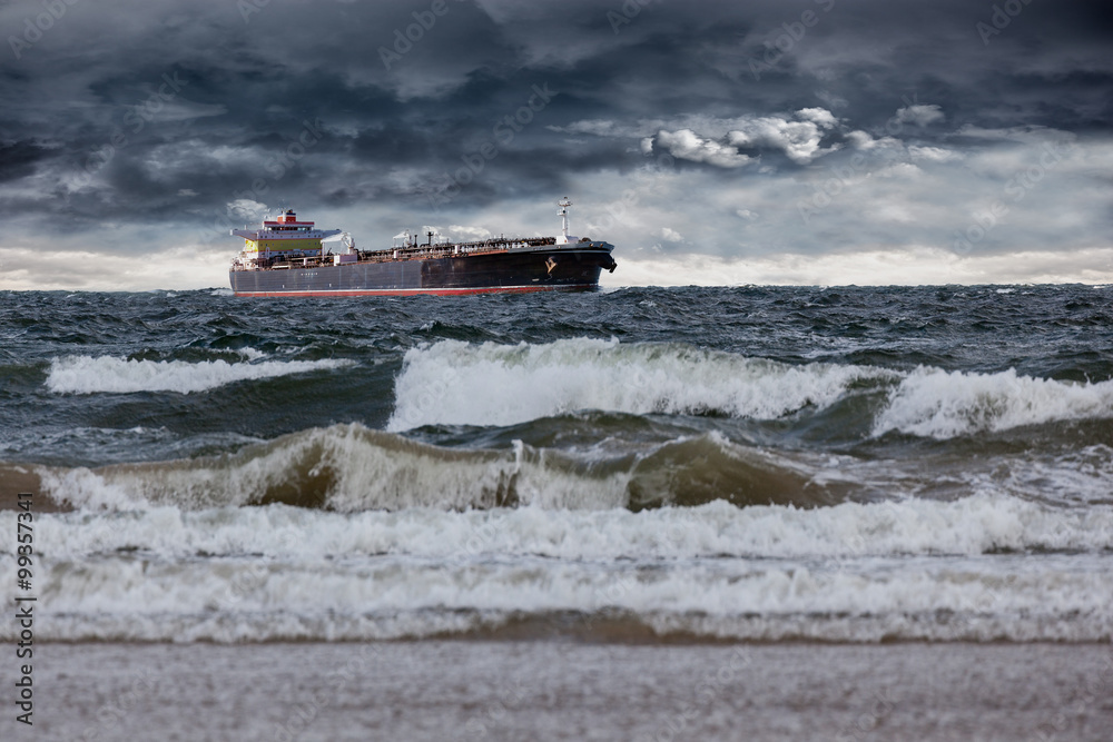 Tanker ship at sea during a storm.