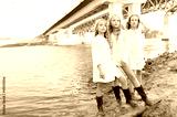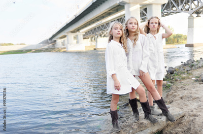 Portrait of three girlfriends on the nature
