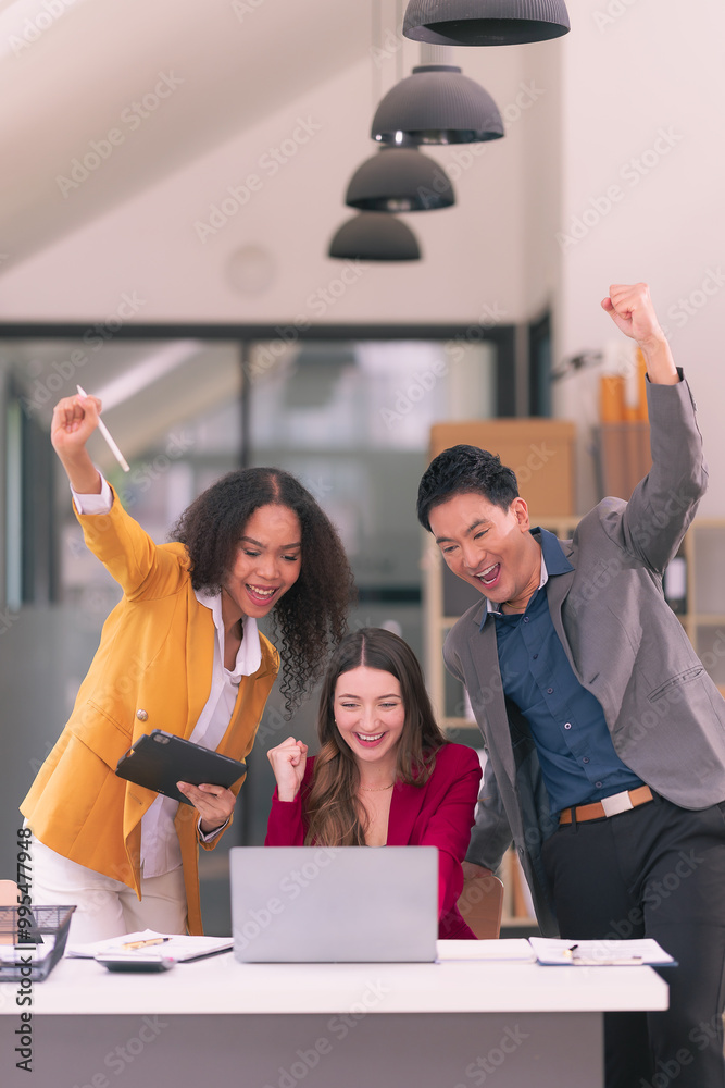 Business team shaking hands celebrating success Applause and shaking hands celebrating success in business deal Business people presenting their business start-up project together