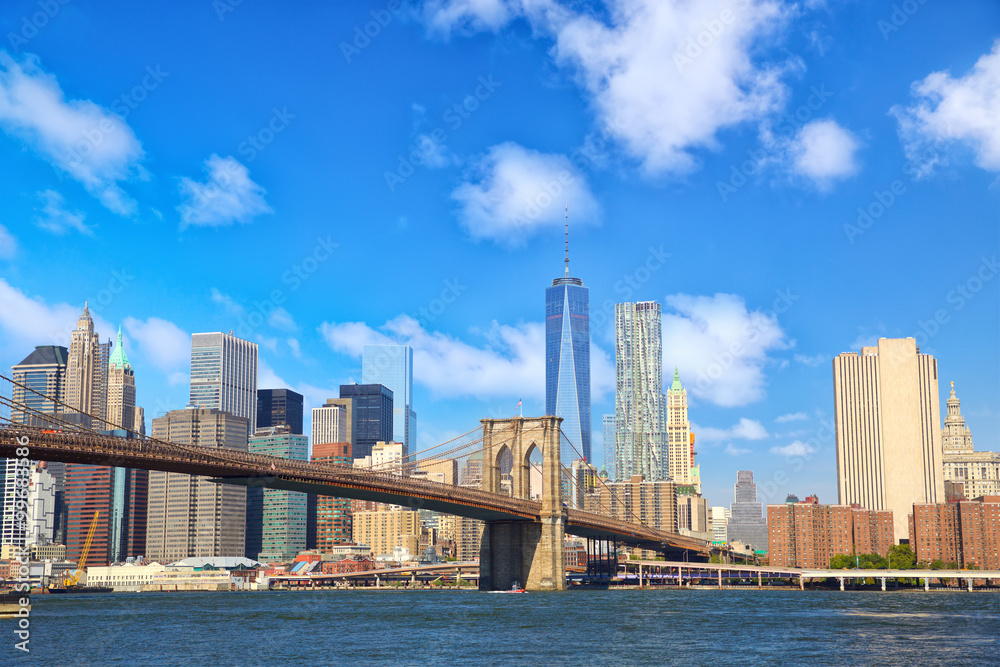 Manhattan skyline with Brooklyn Bridge, New York City, United States