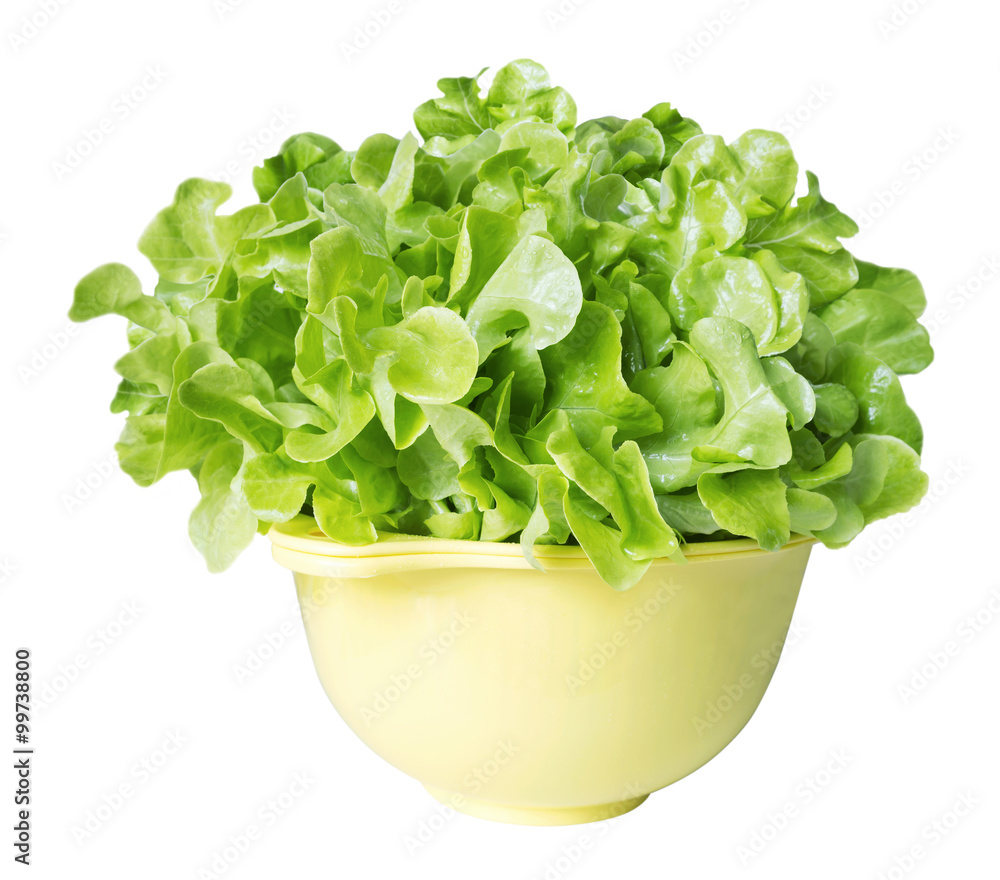 Fresh green oak lettuce on white background