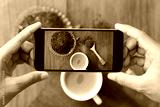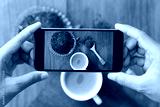 closeup hand holding phone shooting drink photograph