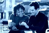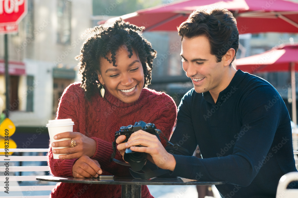 Couple browising camera pictures