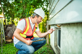 inspector or engineer is checking the building structure and house. After the renovate is complete