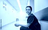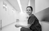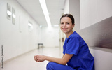 smiling female nurse at hospital corridor