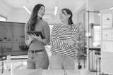 portrait of smart confident business casual woman in modern office interior office work project esg zero waste brainstorm ideas sharing casual meeting discussion woman standing in conference room