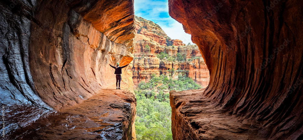Children's curiosity - boy looking throw the hol in the gate to the shed