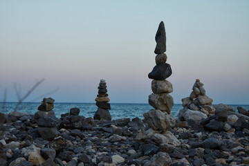 Migratory birds flying in the shape of v on the soft and blur pastel colored sky background. gradient clouds on the beach resort. nature. sunrise. peaceful morning.Instagram toned style