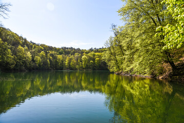 "Szmaragdowe Lake" in Szczecin in spring. Forest spring landscape.