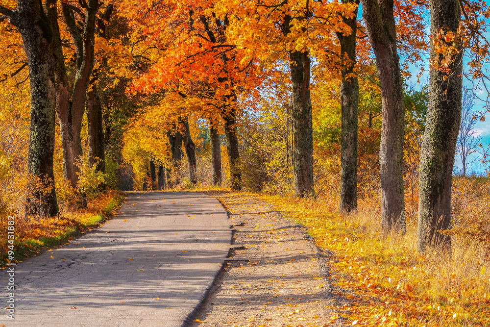 Asphalt road and blue sea with island nature landscape on a sunny day