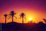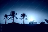 Silhouette of palm trees at sunset