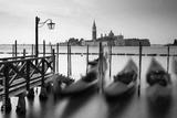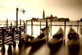Gondolas moored by Saint Mark square with San Giorgio di Maggior