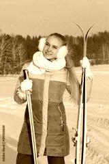 Skiinag and woman