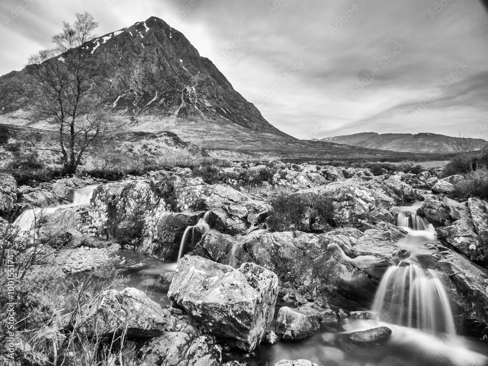 Waterfall with Buachaille etive mor, Glen Coe, Scotland, UK