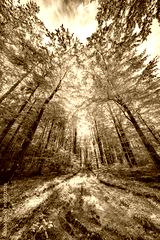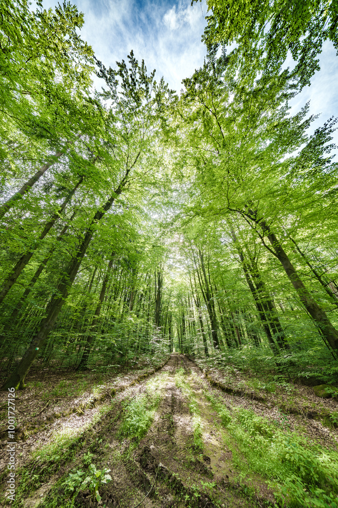 Sunlight Gently Filtering Through the Lush Green Forest Canopy Creates a Magical Atmosphere