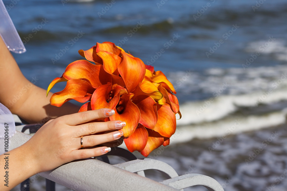 beautiful wedding bouquet of the bride.