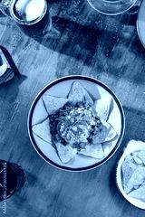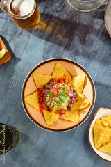 Delicious Guacamole with Nacho Chips Served on Rustic Table