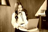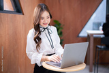 asian freelance people business female talking making using casual working with laptop computer for browsing internet, chatting and blogging and smartphone,notebook in coffee shop.