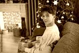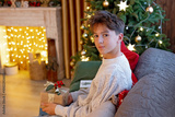 Sweet children, cute boys, brothers, playing with christmas toys on Christmas, beautifully decorated home for Christmas, cosy place