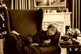 Sweet blond child, cute boy, playing with christmas toys on Christmas, beautifully decorated home for Christmas, cosy place