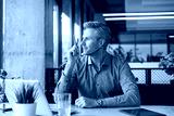 Smiling friendly handsome young male call centre operator.