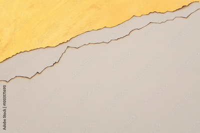 Burned Torn, ripped paper pieces wave lines. Gold, Beige, brown copy space texture background