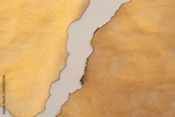 Burned Torn, ripped paper pieces wave lines. Gold, Beige, brown copy space texture background