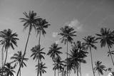 Coconut palm trees against the blue cloudy sky