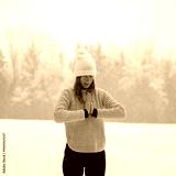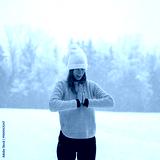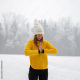 Spiritual young woman practicing mindfulness and gratitude in snowy winter nature