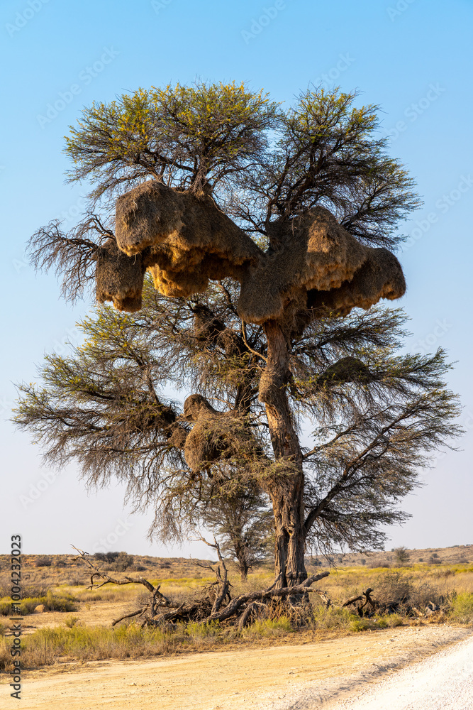 Large community nest of Sociable Weaver, Kgalagadi Transfrontier Park
