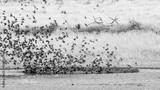 Flock of birds in a waterhole, Kgalagadi Transfrontier Park