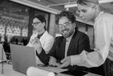 Diverse team members collaborate on an exciting project in a modern workspace, showcasing teamwork and creativity