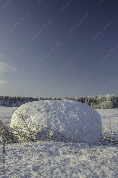 large boulder in the snow in the winter