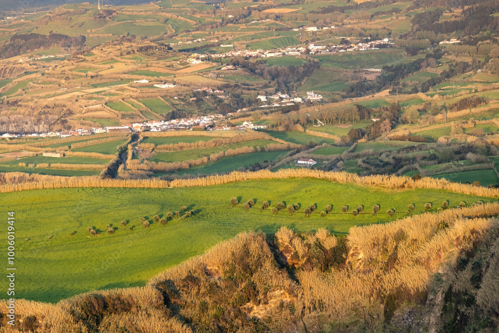 Breathtaking view of the cliff Atlantic ocean coat at sunset Azores islands Portugal