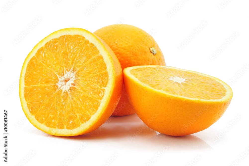 citrus orange fruit with cut isolated on white background