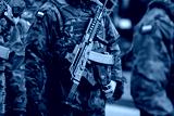 Details of a Polish soldier in uniform during the Romanian National Day military parade.