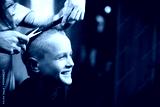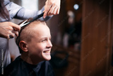 Young man is using Hairdresser making haircut to young man at beauty parlour. Fashion male model behind the scene.