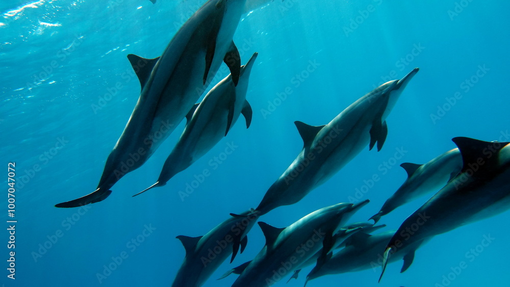 Dolphins. Spinner dolphin. Stenella longirostris is a small dolphin that lives in tropical coastal waters around the world.