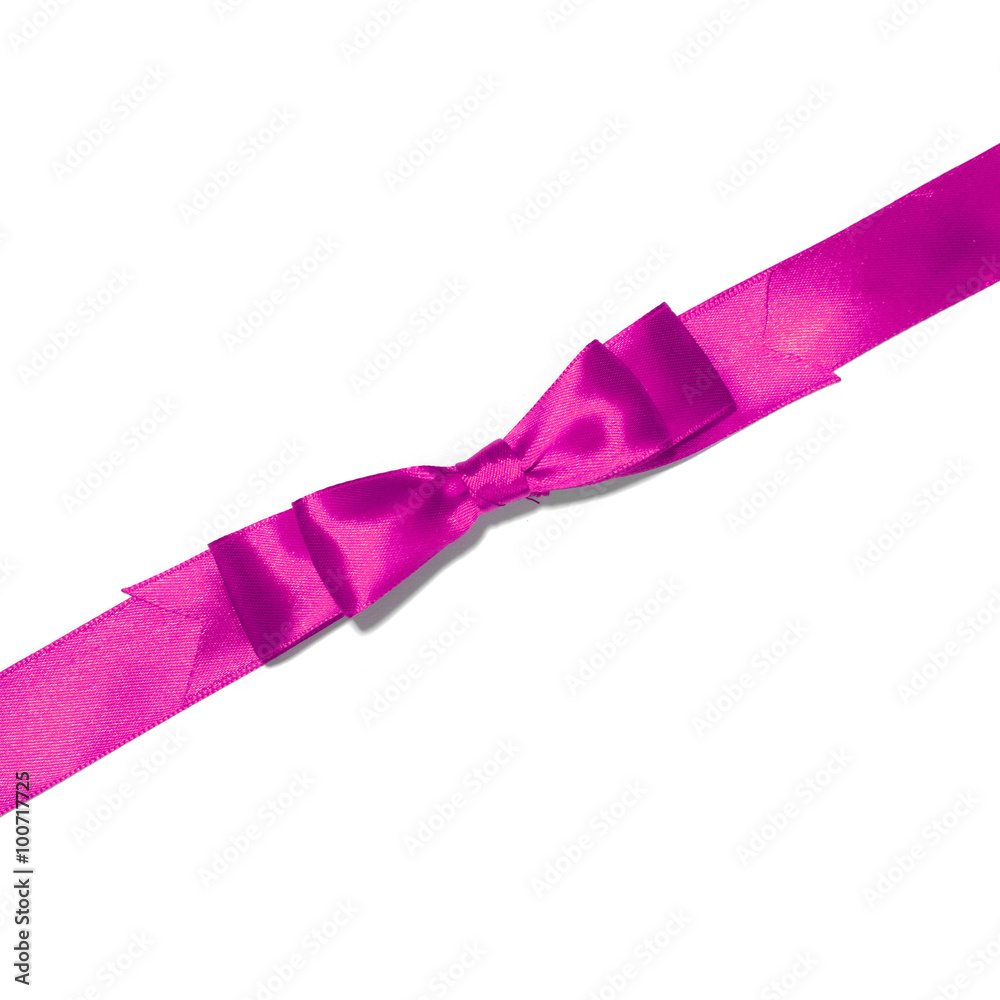 Shiny purple satin ribbon on white background