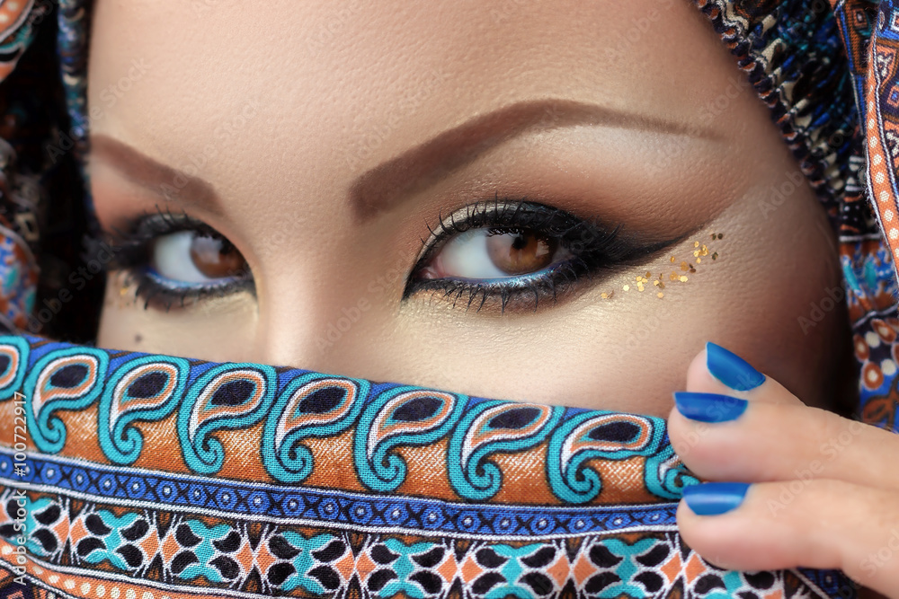 Hijab, eyes of beautiful woman, arabian makeup, intense look