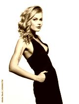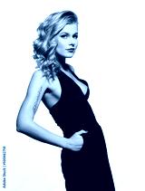 Elegant blonde hair shining in the night black suit on a white background