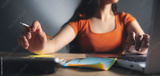 young girl works in the office