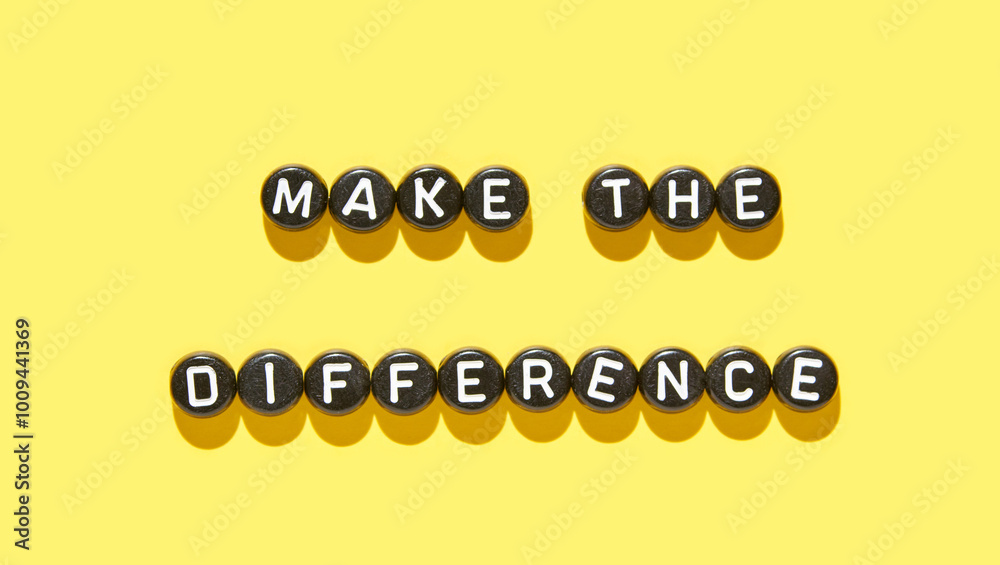 Inspirational motivational message with bold typography: make the difference on vibrant yellow background.